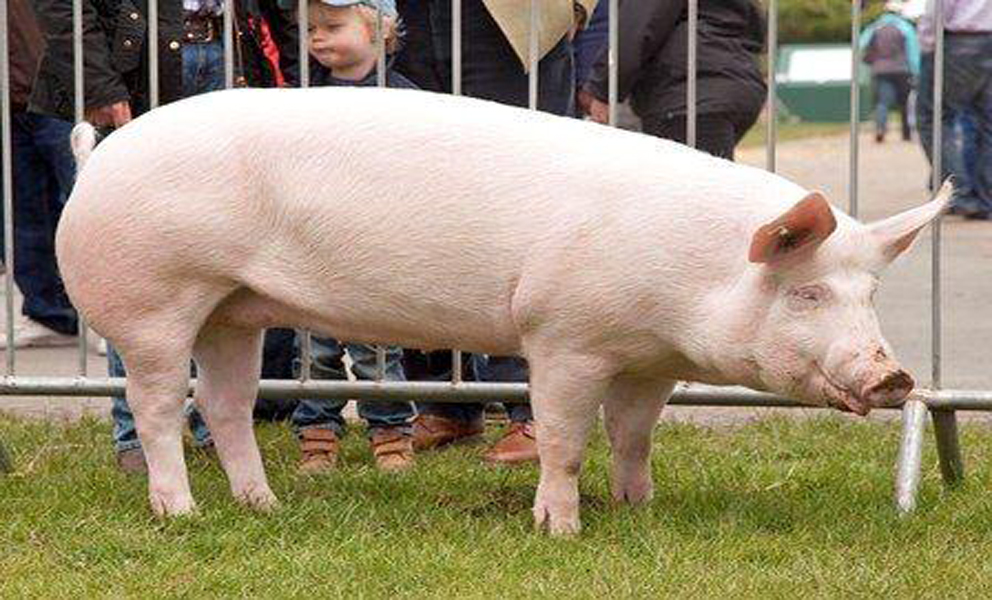 Yorkshires are white in colour and have erect ears. They are the most recorded breed of swine in the United States and in Canada. They are found in almost every state, with the highest populations being in Illinois, Indiana, Iowa, Nebraska and Ohio. The modern Yorkshire is very muscular, with a high proportion of lean meat and low backfat, in addition to being very sound and durable.